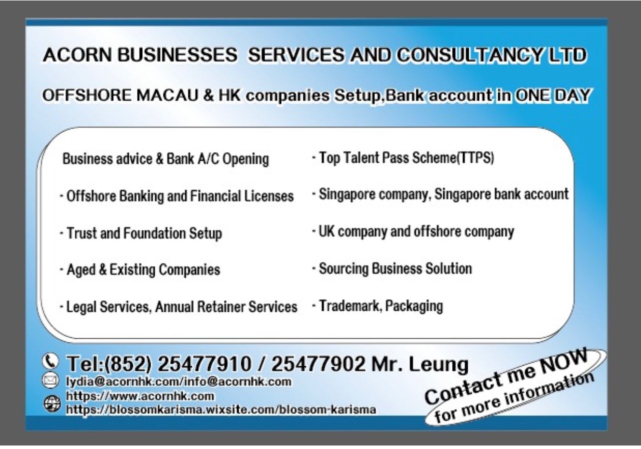 Acorn Business Services Consultancy is a comprehensive business corporate and commercial services provider including mainly services in relation to company formation, tax planning, legal and accounting services. We are in association with experienced lawyers, certified public accountants, qualified company secretaries, banker and international tax planning advisers.