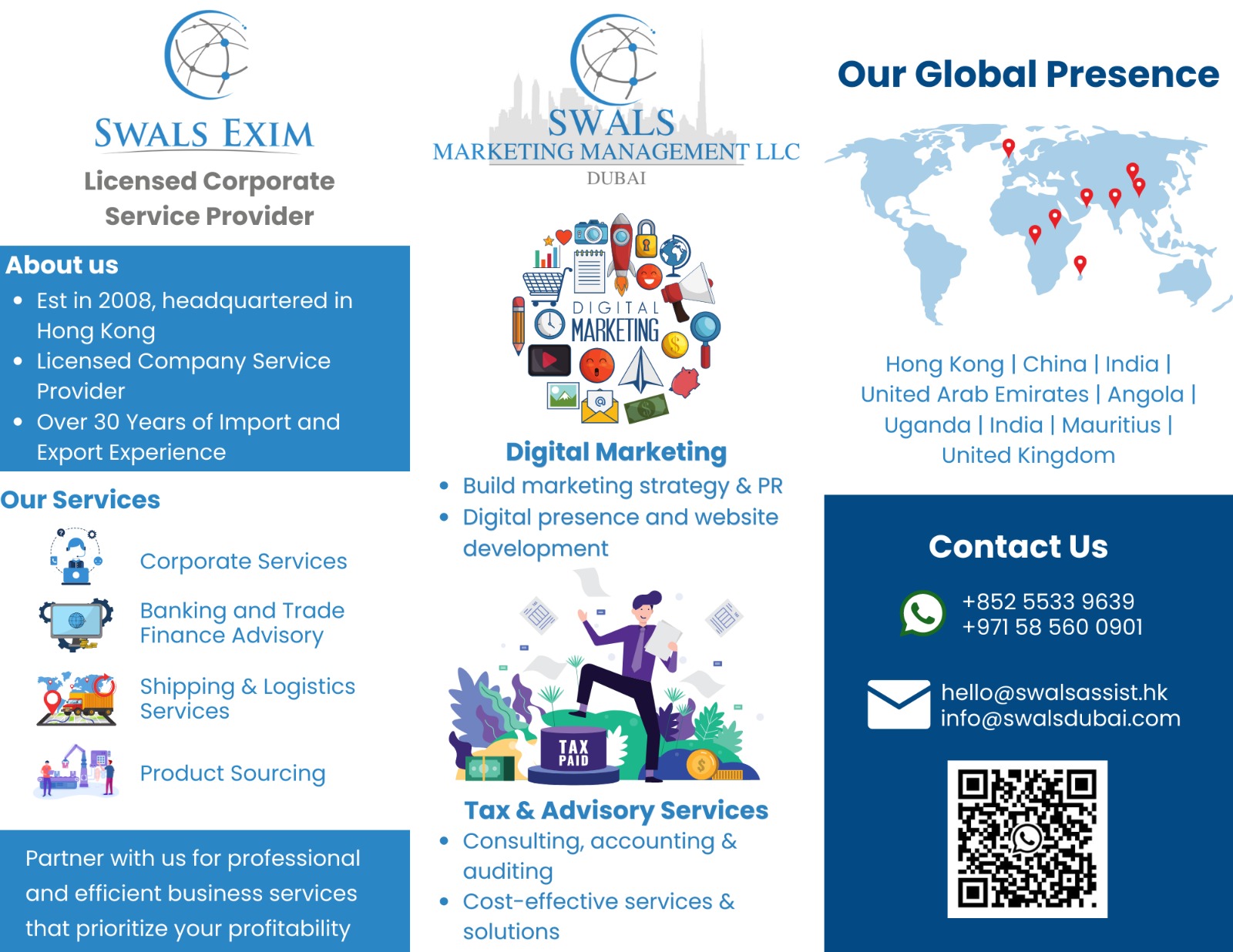 Swals Assist a 16 year young organization– the services arm of Swals Exim Pvt. Limited headquartered in Hong Kong, is a comprehensive, one-stop, and reliable integrated business and corporate solutions services provider in Hong Kong, China, and the Asia Pacific.